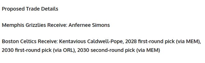 ?凱爾特人得到:肯塔維厄斯?考德威爾-波普(KCP)、2028年灰熊首輪簽、2030年魔術(shù)首輪簽、2030年灰熊次輪簽