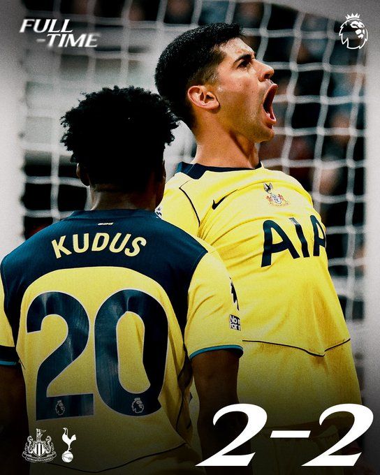 英超 紐卡斯?fàn)柭?lián) 2-2 托特納姆熱刺